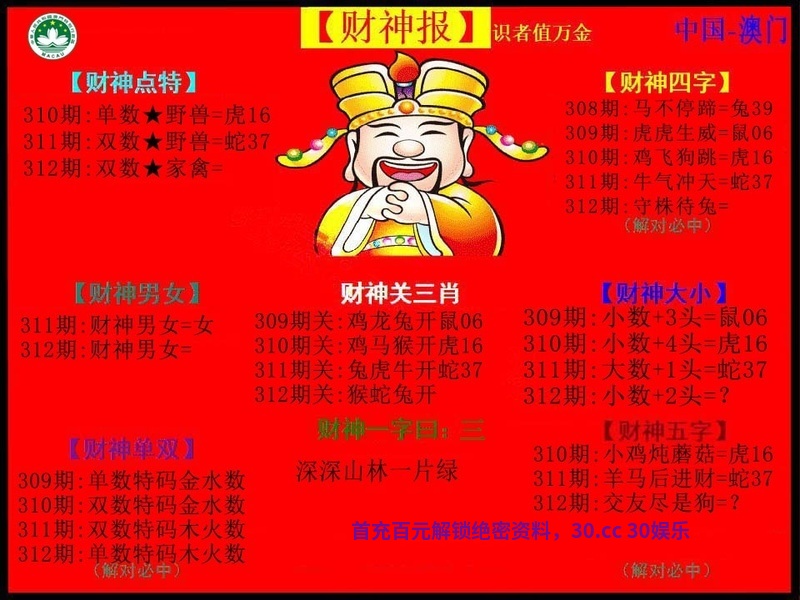 | 310期:【前后四肖】开:虎16准 前【兔龙虎蛇】后【鸡狗马猪】 |